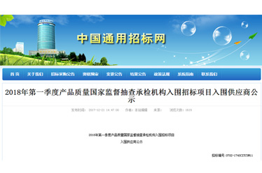方圓廣電檢驗(yàn)檢測股份有限公司(簡稱“方廣檢測”)列入了“2018年第一季度產(chǎn)品質(zhì)量國家監(jiān)督抽查承檢機(jī)構(gòu)入圍招標(biāo)項(xiàng)目”入圍供應(yīng)商。