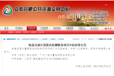 廣電計量中標合肥軌道交通計量器具檢測服務項目,涉及合肥地鐵一、二號線,中標金額為130萬元。