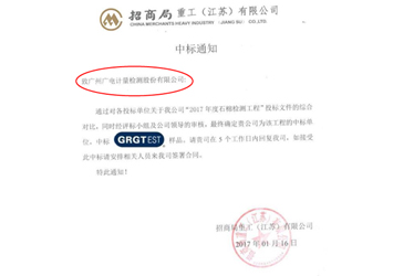 招商局重工(江蘇)有限公司發來通知:最終確定廣電計量作為招商局重工(江蘇)有限公司“2017年度石棉檢測工程”的中標單位。