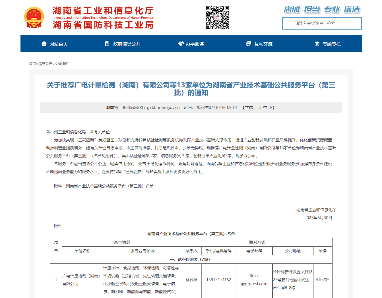 湖南廣電計量入選湖南省產業技術基礎公共服務平臺