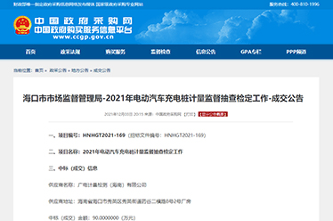 喜訊 | 海南廣電計量首獲充電樁計量監督抽查檢定政府采購項目