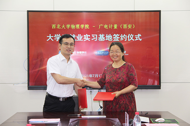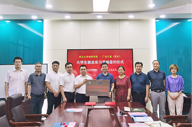 7月13日,廣電計量檢測(西安)有限公司(簡稱西安廣電計量)與西北大學物理學院舉行“大學生就業(yè)實習基地”簽約授牌儀式。雙方圍繞產學研合作與人才培養(yǎng)等方面進行了深入洽談,并簽署校企合作協議。西北大學物理學院黨委書記、常務副院長張軍麗,副院長鄭新亮、師耀武,黨委副書記楊軍良;西安廣電計量總經理李軍等出席了簽約授牌儀式。