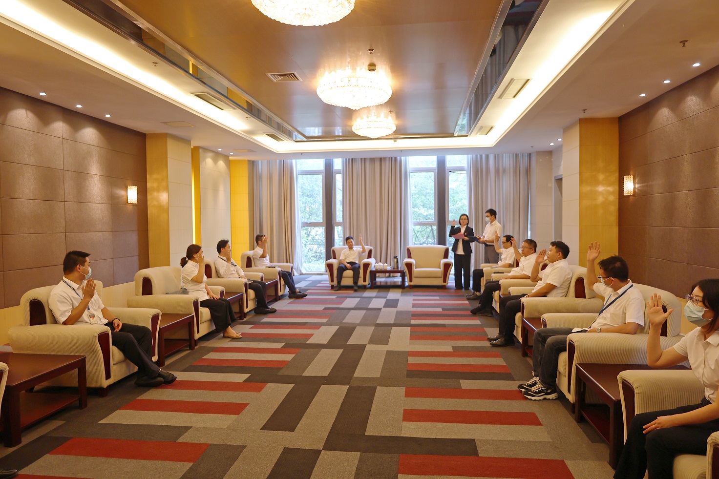 經(jīng)過大會(huì)選舉計(jì)票人和監(jiān)票人的統(tǒng)計(jì),儲(chǔ)程晨、龍陽(yáng)、許策、羅平、陳舒文、陳小娟、鄭思楊、盧元坤、戴軍、趙曉聯(lián)、孫杰、張磊、張正惠、戴晶晶、董麗、呂凌展16人當(dāng)選為企業(yè)科協(xié)第一屆委員會(huì)委員。隨后,新吳區(qū)科協(xié)主席郭中華宣布:廣州廣電計(jì)量檢測(cè)無錫有限公司科協(xié)正式成立。