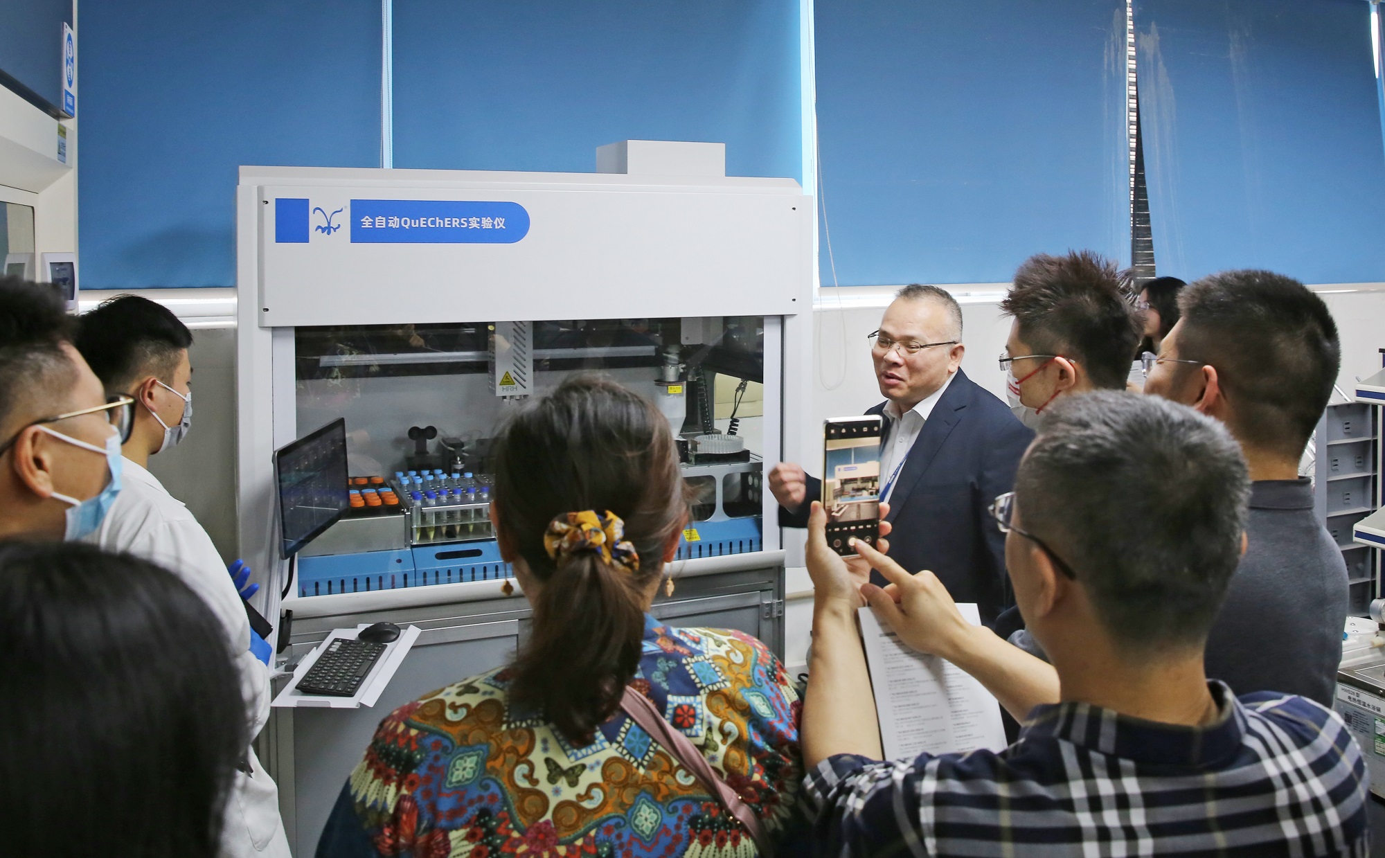 隨后,嘉賓一行參觀廣電計量科學城生態環境實驗室、食品檢測實驗室及化學實驗室,實地觀摩高端智能化設備,詳細了解公司在生態環境、食品、化學等領域的檢測服務能力。在食品科普互動環節,嘉賓現場體驗滴定變色科普實驗、微生物觀察實驗,零距離了解食品檢測的實驗過程。