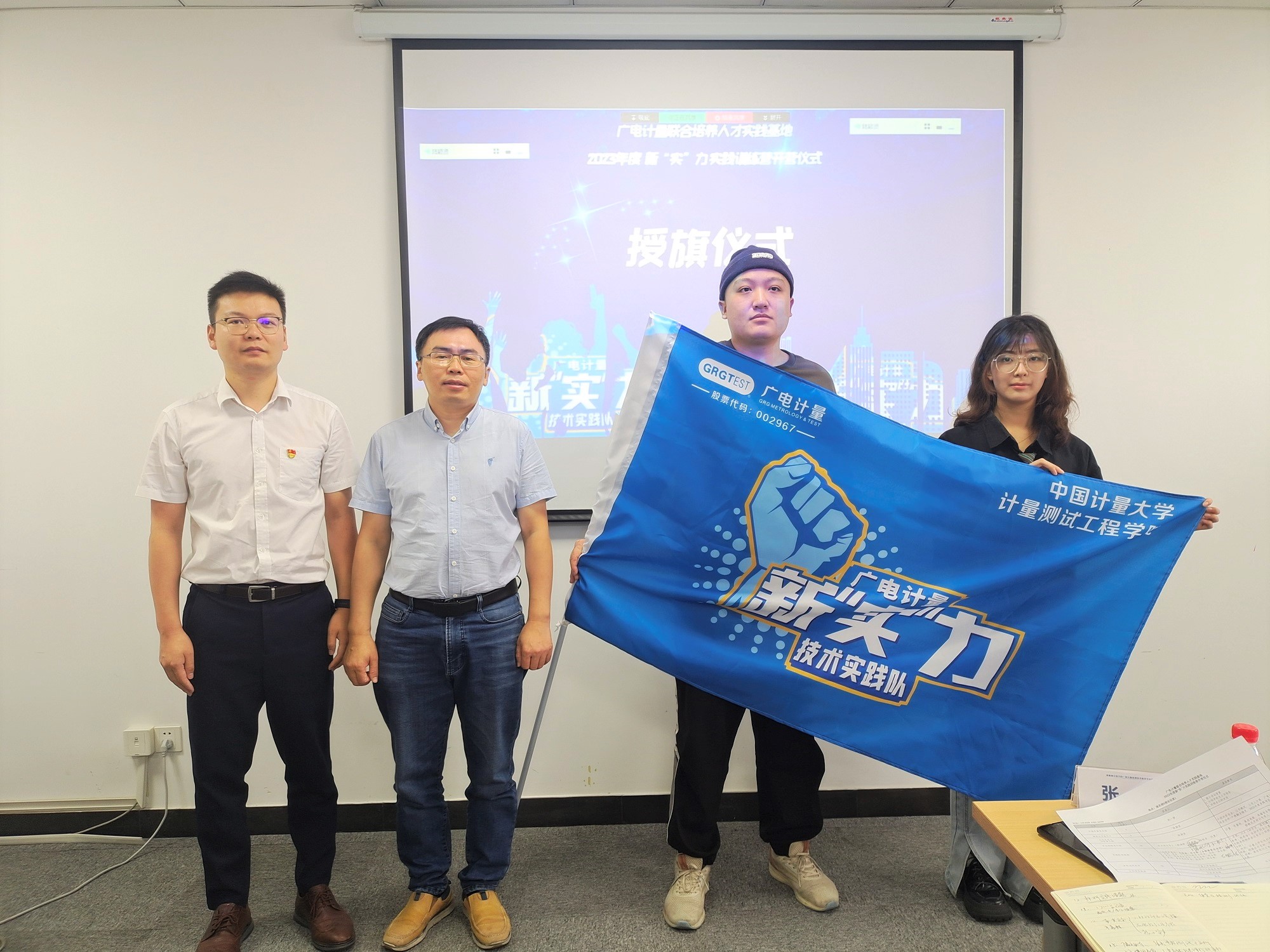 隨后舉行了授旗儀式,新“實”力訓(xùn)練營旗幟由廣電計量交給各高校學(xué)生代表,宣告2023年度新“實”力實踐訓(xùn)練營正式開營。