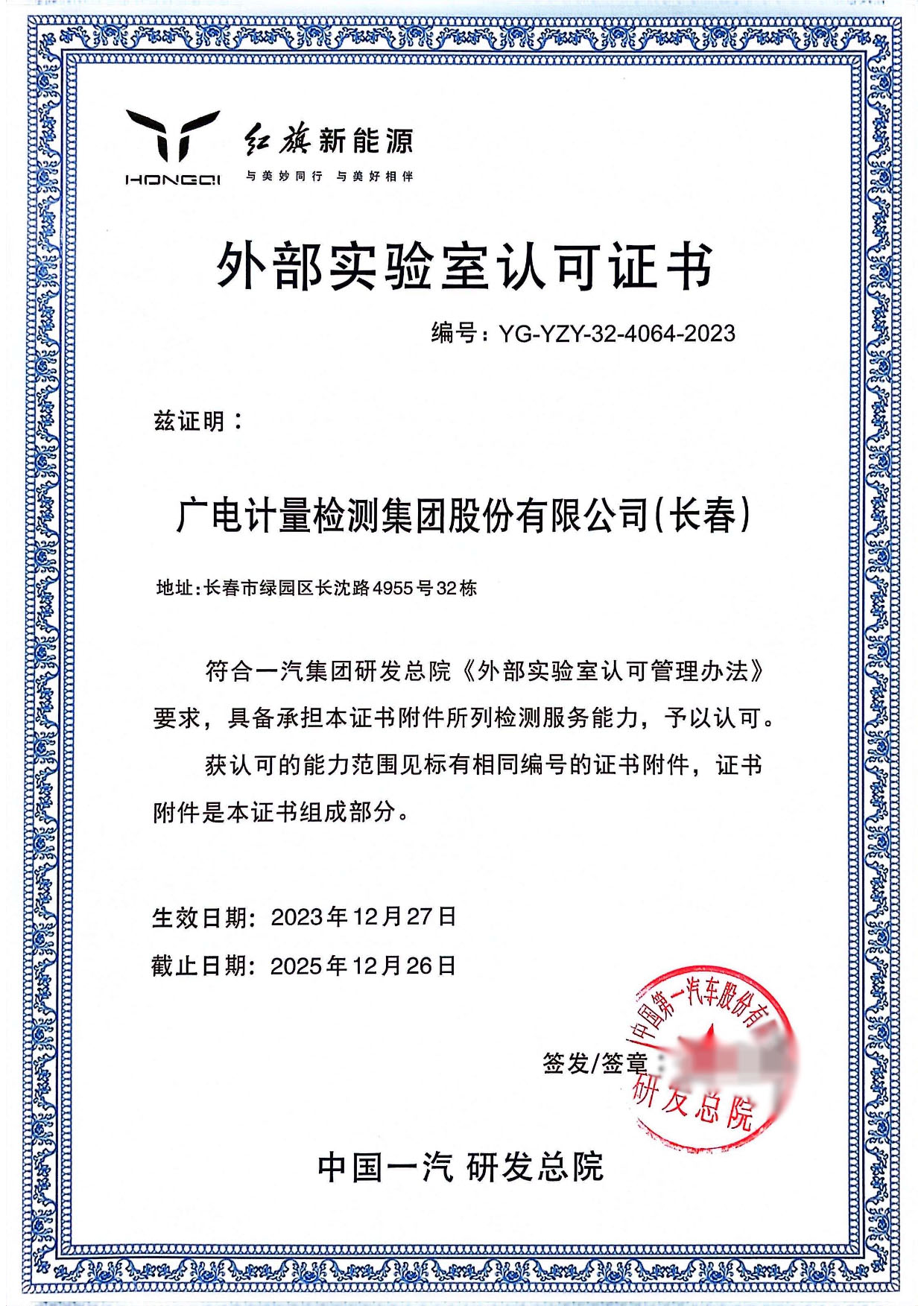 資訊中心公司新聞喜訊 | 廣電計量上海、長春實驗室獲紅旗新能源外部實驗室認可