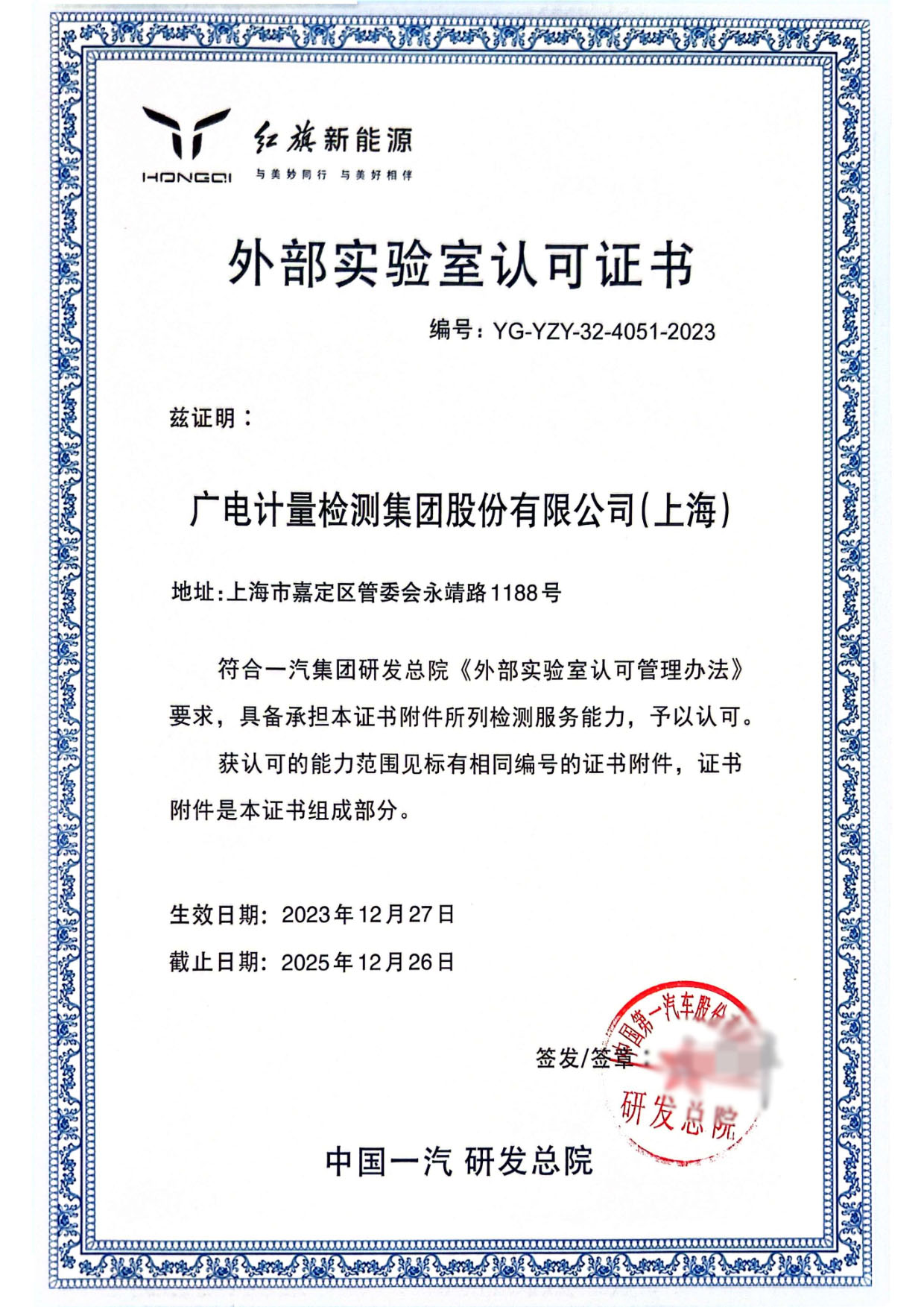 喜訊 | 廣電計量上海、長春實驗室獲紅旗新能源外部實驗室認可