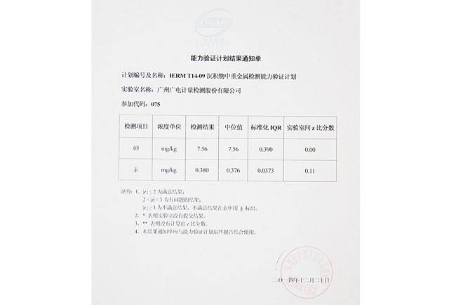 GRGT近期收到環境保護部標準樣品研究所關于“IERM T14-09 沉積物中重金屬檢測”能力驗證計劃結果通知單,結果顯示我司化學分析測試中心檢測結果全部為中值,成績突出,順利通過本次能力驗證。