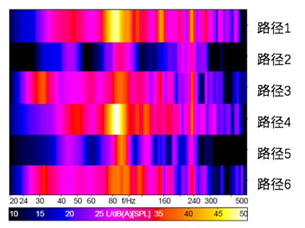 再次預測空調管路對車內的貢獻,特征頻帶的共振帶明顯減弱: