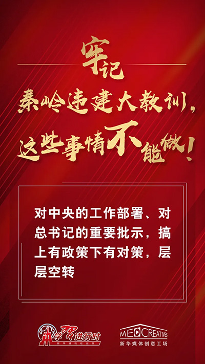 秦嶺違建的“大教訓(xùn)”深刻警示,同以習(xí)近平同志為核心的黨中央保持高度一致,堅(jiān)定“四個(gè)意識(shí)”、做到“兩個(gè)維護(hù)”,不是空喊口號(hào)而是重在落實(shí)、令行禁止,在貫徹執(zhí)行中央決策部署上不打折扣、不搞變通。