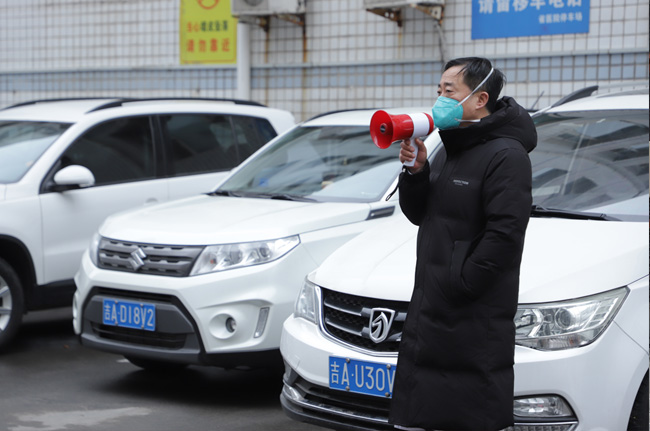 這是3月12日,吉林省人民醫(yī)院黨委書記苑志新指揮患者轉(zhuǎn)運(yùn)。(受訪者供圖)