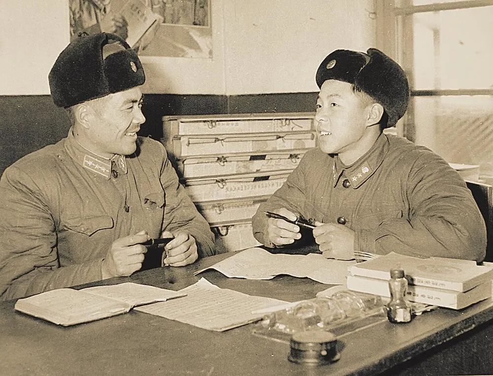 雷鋒入伍后表現突出,得到組織的充分肯定。圖為運輸連指導員高士祥與雷鋒談話(張峻 攝)